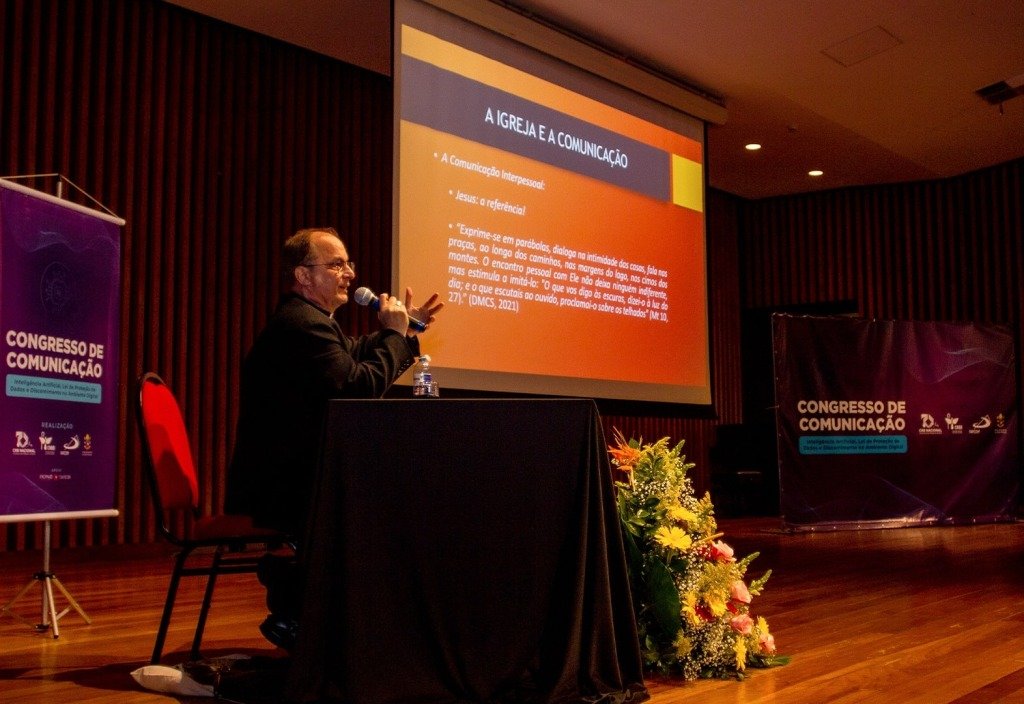 Irmã Neusa também anunciou a temática do dia, agradecendo a presença de Dom Valdir de Castro, presidente da Comissão Episcopal para a Comunicação da CNBB, que iniciou o ciclo de palestras com o tema “Igreja e discernimento no ambiente digital: preservar a identidade e transmitir valores”.