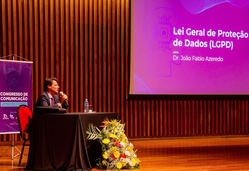 Ainda durante a manhã, o Dr. João Fábio Azeredo, especialista em direito digital, falou sobre a Lei Geral de Proteção de Dados (LGPD), abordando os desafios e responsabilidades que essa legislação impõe às instituições e aos indivíduos no ambiente digital.
