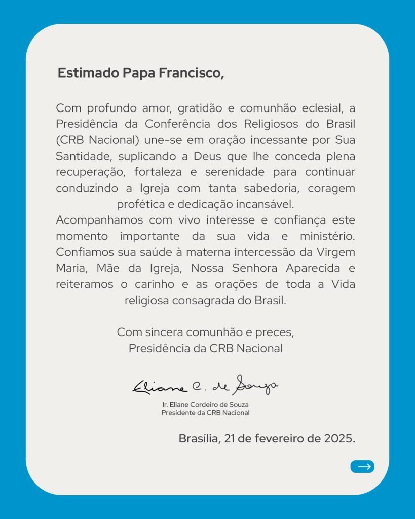 No dia 31 de outubro, a Irmã Izabel Cristina de Carvalho, da Congregação do Sagrado Coração do Verbo Encarnado, encontrou-se em Roma com a Irmã