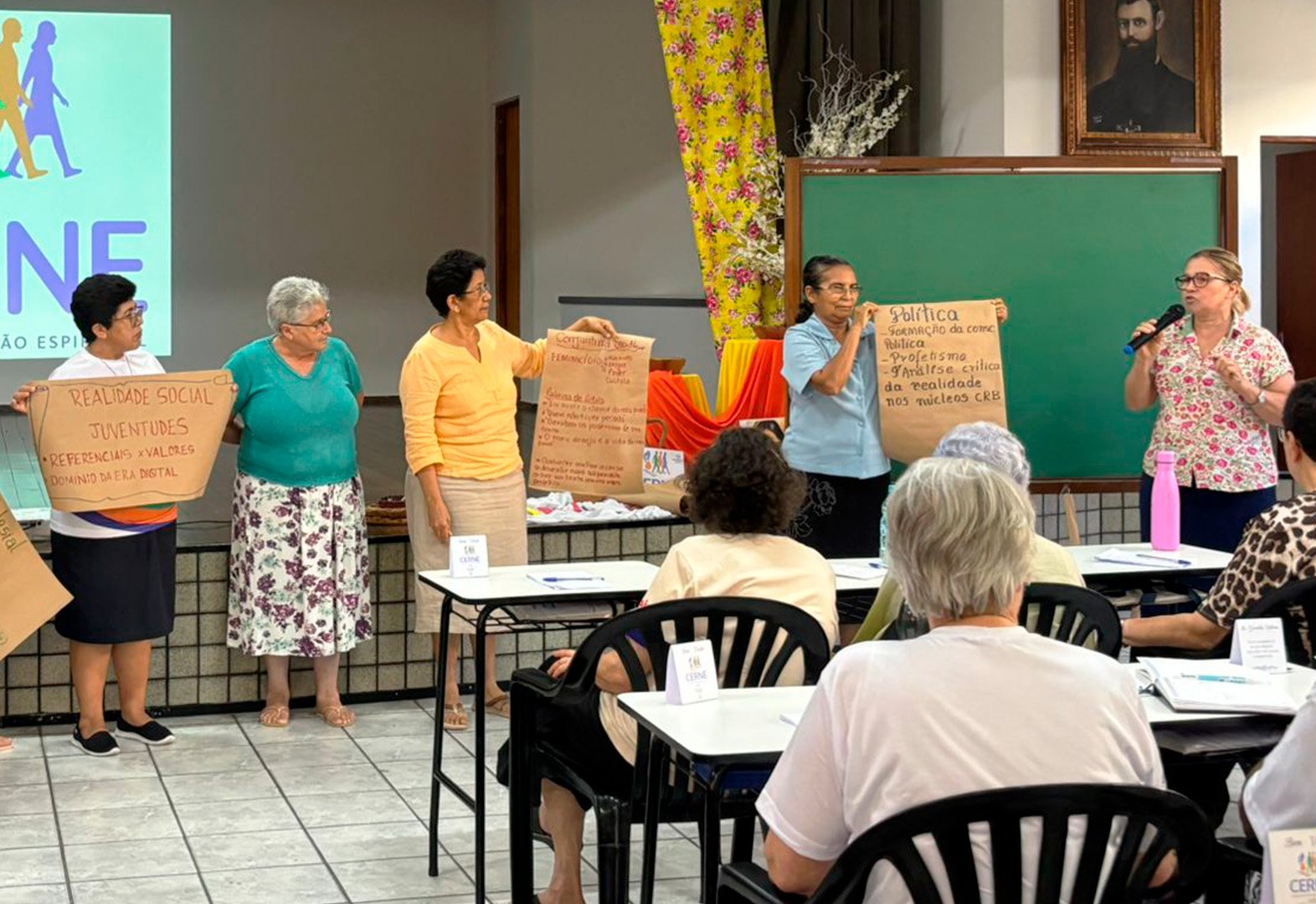 O ciclo foi encerrado com a Dinâmica do Sagrado, momento em que as participantes foram convidadas a colocar-se diante da outra, reconhecendo e acolhendo a vida presente em si e na irmã como dom de Deus e como templo.
