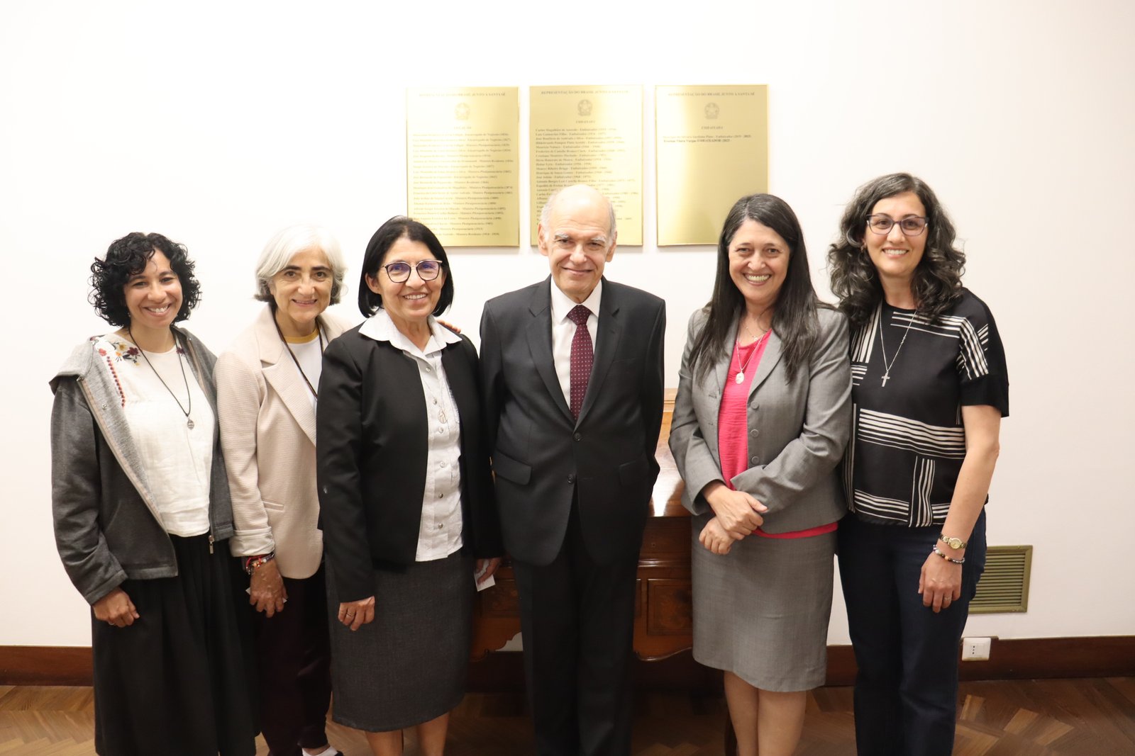 Nesta Sexta feira, dia 10 de outubro, durante as celebrações do Jubileu, a presidente da Conferência dos Religiosos do Brasil (CRB Nacional), Irmã Maria do Desterro Rocha e as assessoras dos Setores de Comunicação, Missão e Projetos foram recebidas pelo embaixador do Brasil junto à Santa Sé, Everton Vieira Vargas.