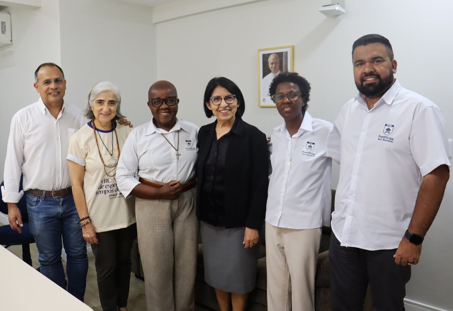 A Diretora Nacional das POM, Irmã Regina da Costa Pedro, participou da reunião acompanhada pelos secretários Pe. Rafael Lopez Villasenor, Irmã Rosângela dos Santos e Pe. Vagner Aparecido Alves. Eles foram recebidos pela Irmã Disterro Rocha, e pela Assessora do Setor Missão, Irmã Rosa Elena Ciprés.