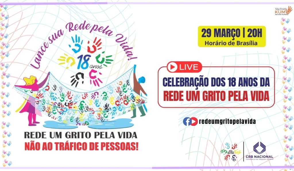 No dia 29 de março, data do aniversário de fundação da Rede Um Grito Pela Vida, será realizada uma live especial para celebrar os 18 anos dessa missão profética na Igreja e na sociedade. Com o tema “Lance sua rede pela Vida”, a transmissão acontecerá às 20h (horário de Brasília) nos canais oficiais da Rede no YouTube e Facebook.