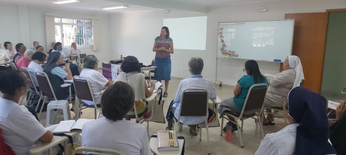Durante o dia semanal de deserto, Ir. Cláudia Naves dos Reis falou sobre o tema da “Comunhão Trinitária”, enquanto Ir. Cristina Giane convidou os participantes a viver plenamente no espírito durante o retiro. Com a dinâmica de “parar, olhar e seguir”, os participantes foram incentivados a refletir sobre as realidades movidas pela Divina Ruah em cada um, preparando um caminho de liberdade, humanização, interioridade e transformação.