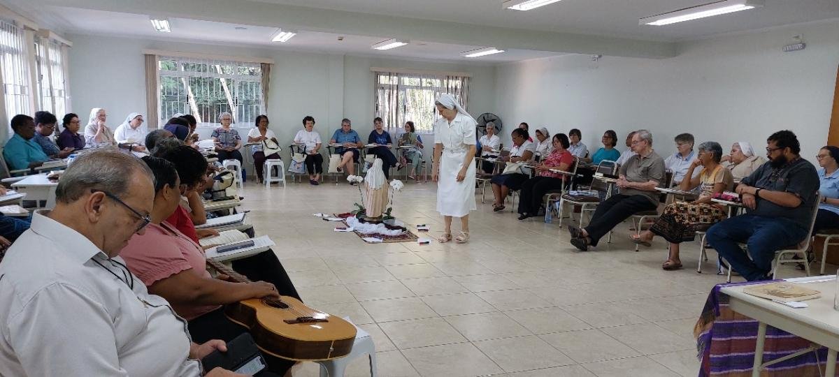 Durante o dia semanal de deserto, Ir. Cláudia Naves dos Reis falou sobre o tema da “Comunhão Trinitária”, enquanto Ir. Cristina Giane convidou os participantes a viver plenamente no espírito durante o retiro. Com a dinâmica de “parar, olhar e seguir”, os participantes foram incentivados a refletir sobre as realidades movidas pela Divina Ruah em cada um, preparando um caminho de liberdade, humanização, interioridade e transformação.