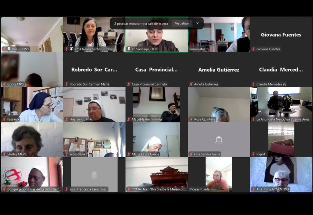 A Irmã Neusa Santos, Assessora do Setor de Comunicação da CRB Nacional que também faz parte da Comissão de Comunicação e Cultura Digital da CLAR, dinamiza o dialogo nas transmissões online via Zoom, junto ao Frei Santiago cerca de 300 participantes virtuais, enquanto o Congresso reune cerca de 400 pessoas estão presentes no local do Congresso.