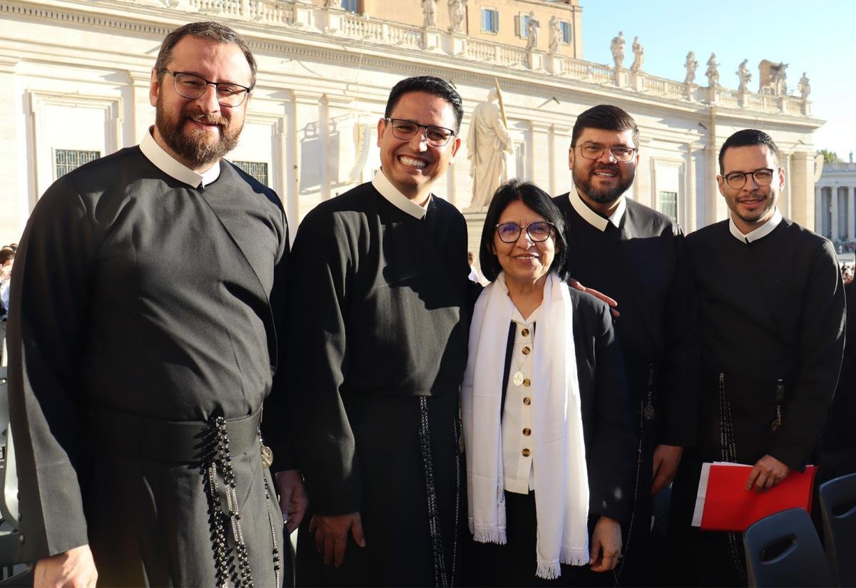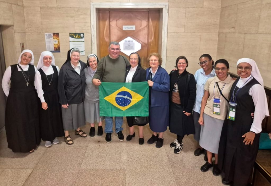 Na manhã desta quarta-feira, 8 de outubro de 2025, a Praça São Pedro, no Vaticano, reuniu milhares de peregrinos de diversas partes do mundo para a audiência geral presidida pelo Papa Leão XIV. Entre os presentes, estava a delegação da Vida Religiosa do Brasil, representada pela presidência da CRB Nacional, Irmã Maria do Disterro Rocha (presidente) e pelas assessoras Irmã Maria Neusa dos Santos, Irmã Rosane Steffenon, Irmã Rosa Elena Ciprés e Irmã Gilcilene Ferreira Silva.